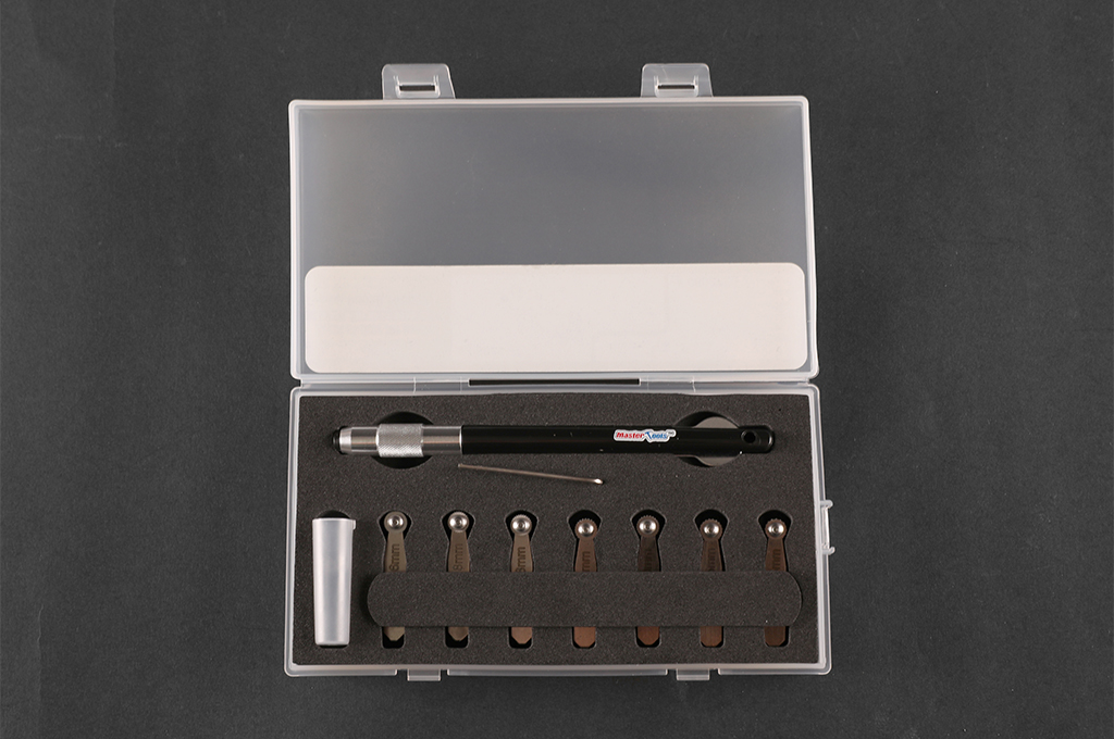 Inkl. 7 stk. forskellige værktøjer med forskellig afstand mellem nittemarkeringerne (0,6 til 1,5 mm).